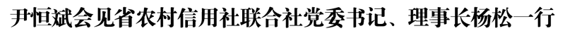 8月5日,市委副书记、市长尹恒斌会见省农村信用社联合社党委书记、理事长杨松一行。市委常委、常务副市长王成刚参加。