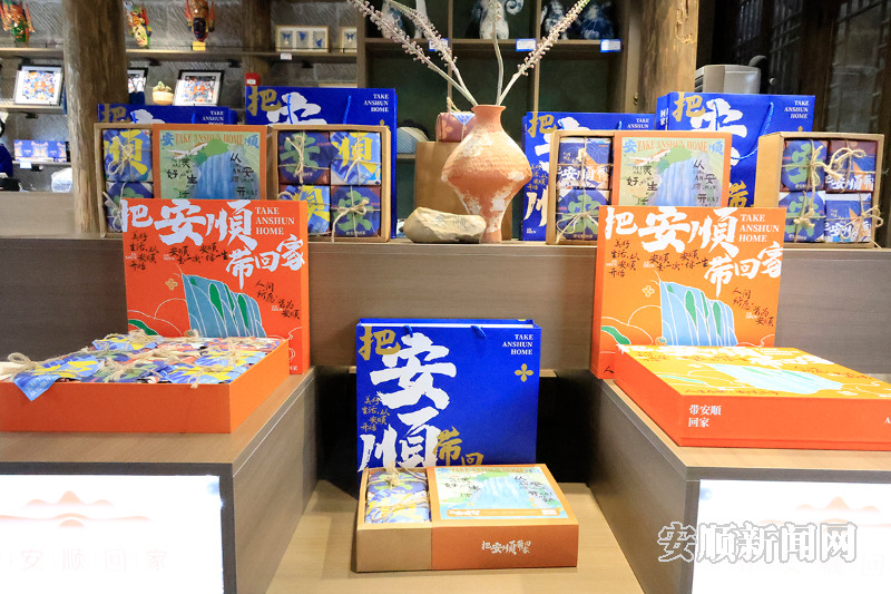 “带安顺回家”古城文创店是安旅集团文创公司打造的10多家文创集合店之一。近年来,该公司始终怀揣着对本土文化的敬畏与热爱,致力于深挖安顺的文化底蕴,让沉睡的文化资源在现代创意的唤醒下“活”起来,以全新的面貌呈现在世人面前。