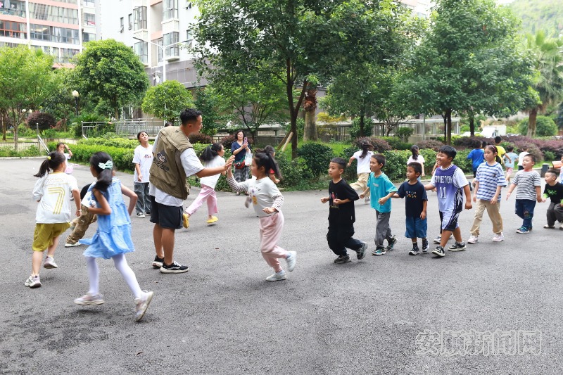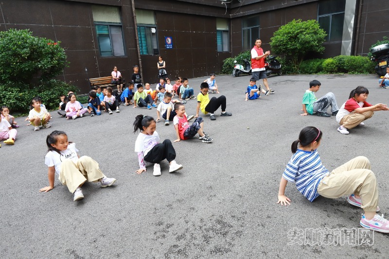 8月12日,西秀区马槽社区“四点半”学校联合猿翼跑酷体能培训中心,在社区翠麓名居广场面向5岁以上的孩子开展跑酷体能培训,让孩子们在暑假中“动”起来,吸引了近40名孩子参加。(安顺市融媒体中心记者 卢维 摄)