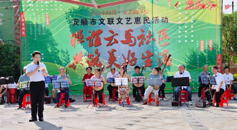 8月14日,市文联文艺惠民活动走进安顺经开区幺铺镇云马社区,与云马新居民联谊会共同举办“联谊云马社区 共筑美好生活”的文艺演出,为众多在此避暑旅居的“安顺新市民”奉上了一场精彩纷呈的文化盛宴。