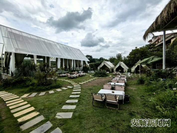 同样位于向阳村的竹韵山庄,主打“清凉避暑”特色,凭借水上乐园和山泉水游泳池,成为夏季避暑的“香饽饽”。“我们山庄的游泳池用的是流动山泉水,水质特别好,游客在这里游泳既能清凉解暑,又能享受大自然的馈赠。”山庄老板卢波介绍,这个季节每天来游泳、吃饭的游客平均达400人次;傍晚时分,不少游客还会沿着山庄后的小山爬上山顶,俯瞰平坝城全景。“有外省避暑游客建议增设住宿房间,方便他们能够留下来,这个建议非常好,也符合我们的需求。”卢波表示,未来将进一步完善山庄设施,增加民宿项目,推出更多休闲娱乐内容,为游客带来更优质的体验。