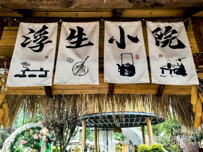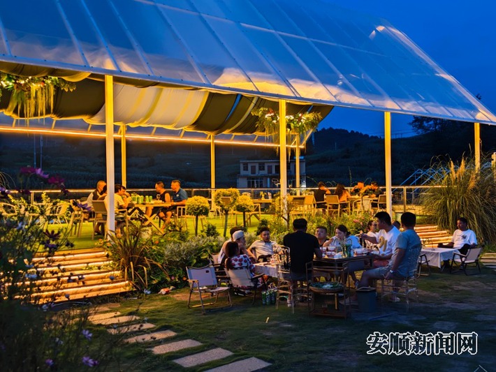 距离常教练的小树林餐厅不远处,浮生小院户外餐厅集吃喝玩乐于一体,每个包房都极具特色,“户外休闲”是其主打风格。“现在都市人生活节奏快,我们想打造一个能让大家慢下来的地方,所以给小院取名‘浮生’,希望每个人都能在这里找到片刻悠闲。”餐厅老板汪讯是一名90后,大学毕业学的专业与运营有关,后曾在青岛工作,2023年返乡开始谋划户外餐厅,2024年餐厅开业,依托自身优势,通过推广,目前到餐厅的客人以外省游客居多。“这几年到平坝避暑的游客越来越多,人们对户外餐厅的品质要求也不断提高。为满足不同人群需求,我们提供咖啡、简餐、炒茶、火锅、烧烤等多种餐饮类型,还搭配了各类娱乐场地。游客可以上台唱歌、参与互动游戏,也能单纯坐在台下听音乐聊天、欣赏美景。”