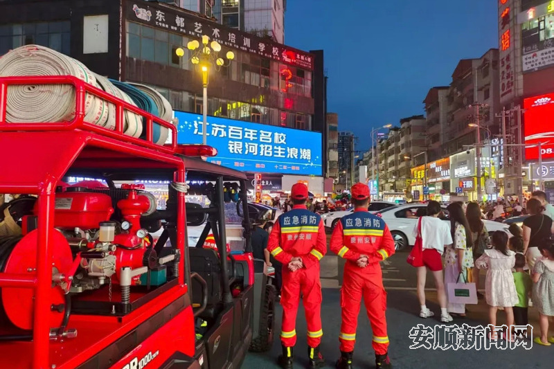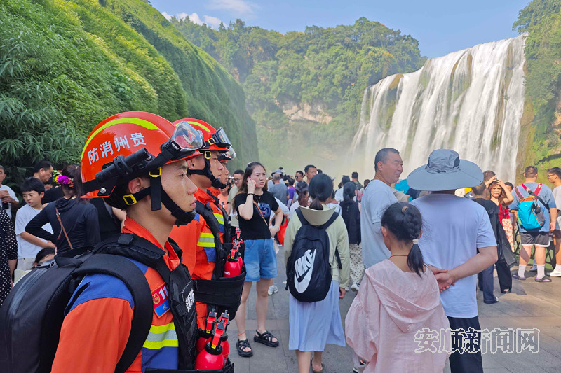 八月的安顺,山水如墨,游人如织。然而,当八方游客沉醉于这份“山水画卷”时,一群身着“火焰蓝”的身影,正默默穿行于人潮与热浪之中。他们或俯身检查消防设施,或检查民宿提醒安全用电,或巡逻景区角落为游客提供帮助,或驾着红色战车在山路间巡逻,构成了一道别样的风景线——一道用最严标准、最实举措为夏日旅游筑牢的安全防线。