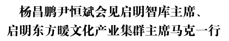 8月19日,市委书记杨昌鹏,市委副书记、市长尹恒斌会见启明智库主席、启明东方暖文化产业集群主席马克一行。