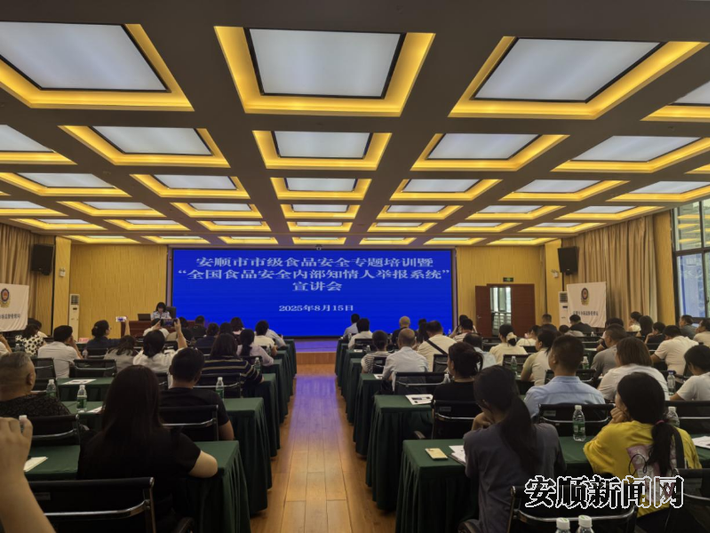 为进一步提升企业食品安全主体责任意识和食品安全管理人员履职能力,近日,安顺市食品药品安全委员会办公室召开2025年度安顺市市级食品安全专题培训暨“全国食品安全内部知情人举报系统”宣讲会。安顺市及西秀区、安顺经开区两级市场监管、公安、农业农村、卫生健康、教育等部门及全市A级及两城区部分重点B级主体的百余名涉食品生产经营企业、学校(幼儿园)食堂负责人及食品安全总监、食品安全员参加培训。