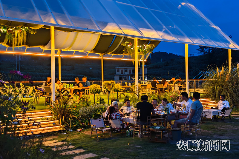 夕阳西下时,餐厅里传来吉他声,工作人员弹着歌,客人偶尔跟着合唱。孔彦戈望着远处的种植区,那里的生态农作物在风中轻轻摇摆。“从成都回到乡村,我们走了三年;让‘健康’在这里扎根,我们想走更久。”
