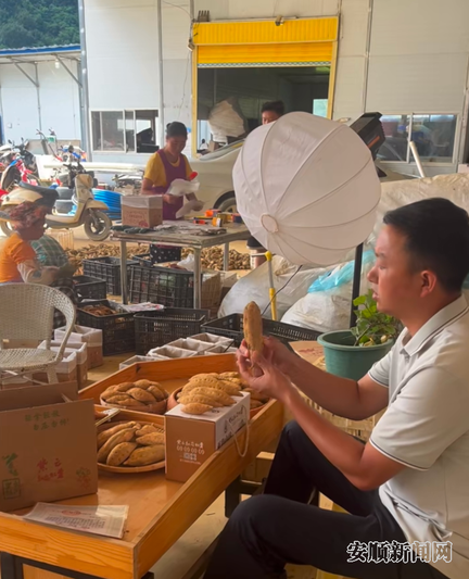 在白石岩乡农村经济发展有限公司的红芯红薯分选销售点,公司负责人王应江正通过网络直播推广销售,近期订单量持续增长,最多时一天能接到1000多单,每单重量5至10斤不等,实现“当天接单、当天发货”,确保消费者及时品尝到新鲜红薯。