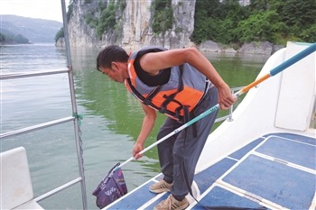 “呜——”,汽笛清脆,划破黔中山谷的宁静。邓生华稳稳掌着“斯拉河01号”舵盘,船头劈开碧浪,浪花翻涌间水鸟盘旋,两岸青山叠翠,野生猕猴不时跃入河中嬉戏。这幅生态画卷,是他九年摆渡生涯里最珍贵的风景。