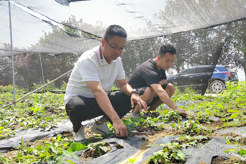 贵州绿色田地中药材发展有限公司负责人查看淫羊藿长势