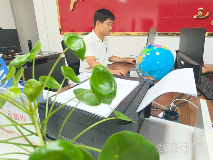 9月4日,在紫兴社区群众服务窗口,卯升富正专注整理社区资料。
