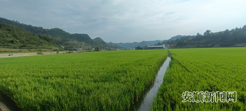 初秋时节,走进紫云自治县坝羊镇红院坝区高标准农田,稻田垄沟间水流潺潺,稻穗下禾花鲤鱼追逐嬉戏。