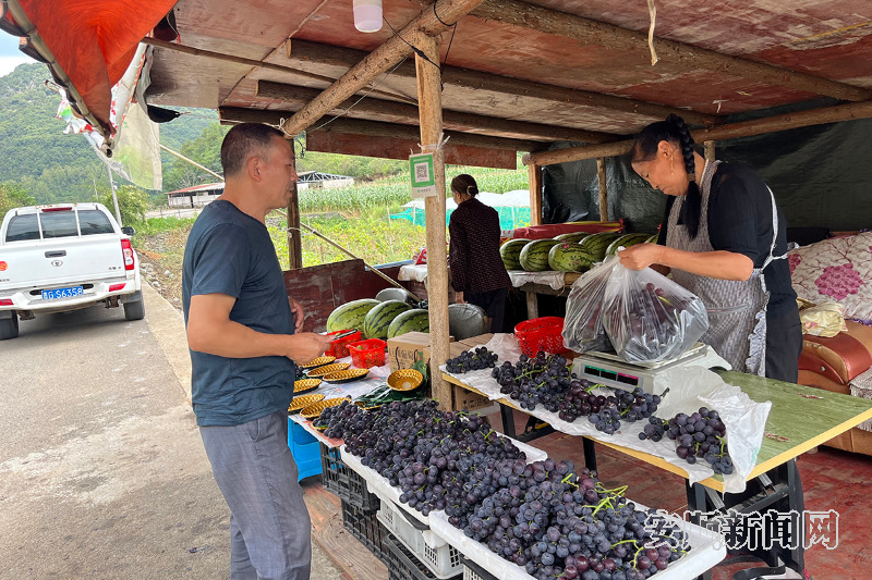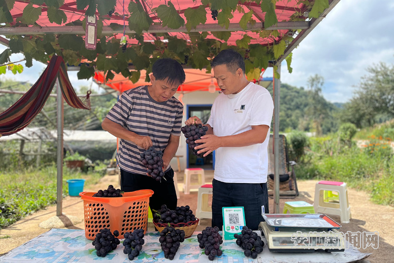 在相邻的挂多村,葡萄种植同样结出了增收的硕果。种植户王金兰的摊位前围满了前来采购的顾客,她正忙着为顾客称葡萄、装袋。