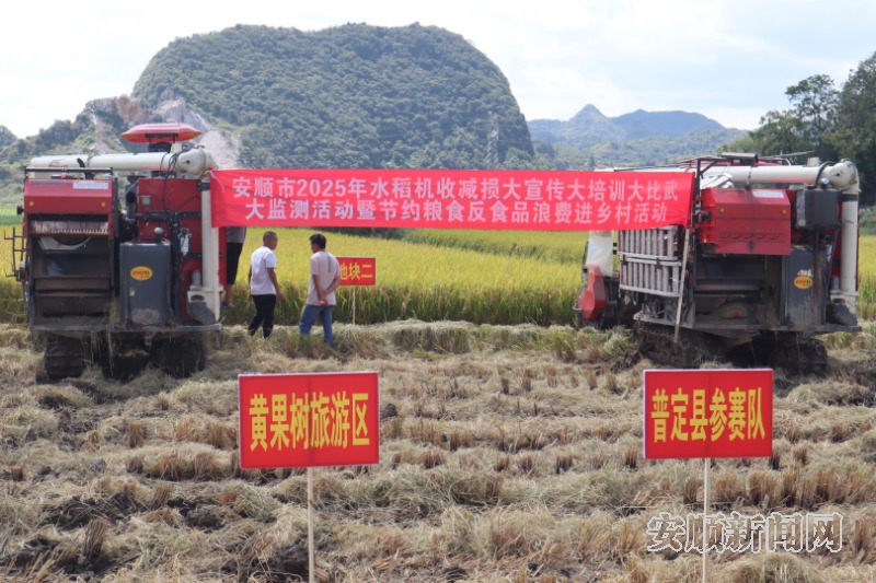 春种一粒粟,秋收万颗子。9月19日,安顺市2025年水稻机收减损大宣传大培训大比武大监测活动暨节约粮食反食品浪费进乡村活动在平坝区羊昌乡稻香村举办。来自西秀、普定、镇宁等县(区)的6位优秀农机手同场竞技。他们以农机为“利器”,在金色的田野上展开技艺较量,生动诠释“颗粒归仓”的责任使命,充分展现农机化技术在推动粮食减损增产中的支撑作用。