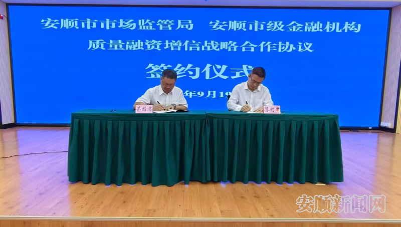 签约仪式上,安顺市市场监督管理局先后与工商银行安顺分行、农业银行安顺分行、中国银行安顺分行、建设银行安顺分行、邮储银行安顺市分行、贵州银行安顺分行、贵阳银行安顺分行、安顺农商银行等八家金融机构签署了质量融资增信战略合作协议,标志着安顺在“质量赋能金融、金融助力质量”方面迈出实质性步伐。