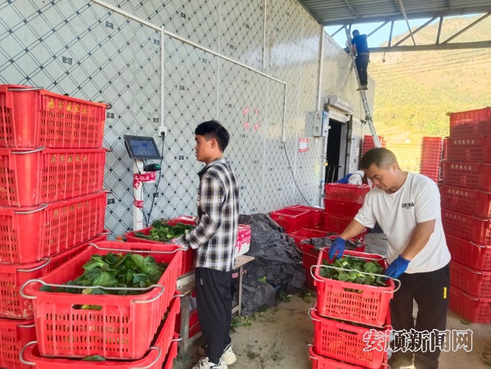 目前,坝区每天需用工240人,固定工人195人,流动工人数十人,年工资支出约1100万元。在分装车间,蔬菜按30斤每件标准打包,贴上标签后经冷库直发深圳。