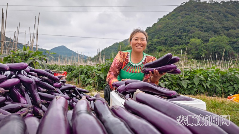 镇宁自治县双龙山街道张官村蔬菜迎来丰收,村民付玲正在将采收好的茄子打包装箱。 □记者 郭黎潇 摄