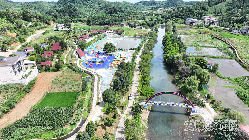 下九组精心打造的彩虹桥、水上乐园及游泳池等网红打卡点。