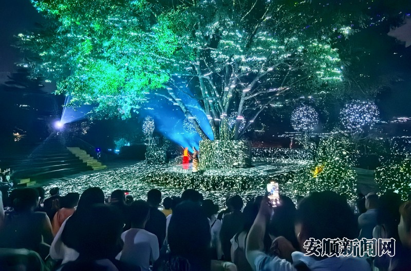 今年4月24日,黄果树风景名胜区以86版《西游记》片尾曲《敢问路在何方》中,师徒四人牵马过瀑布的经典画面取景地陡坡塘瀑布为核心舞台,正式启动总投资达3.28亿元的大型实景仙幻剧《再回西游》,让每一名“西游爱好者”成为了夜游黄果树的拥趸。