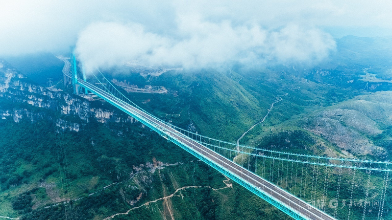 云端架桥,无数建设者用智慧和汗水攻克峡谷强风、复杂地质等世界级难题,在抗风设计、高空施工等领域实现了多项技术突破,成就了花江峡谷大桥“横竖都是第一”的美誉,为全球山区桥梁建设提供了“中国方案”。