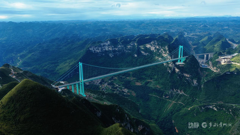 在贵州群山峡谷间,花江峡谷大桥刺破云层。这座桥面距江面625米、主跨1420米的超级工程,以“横竖都是世界第一”之姿跨越峡谷天堑。9月28日,花江峡谷大桥将正式通车。