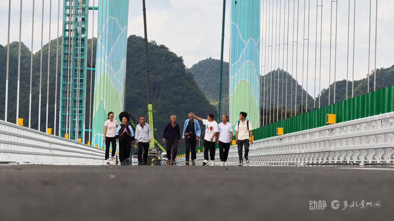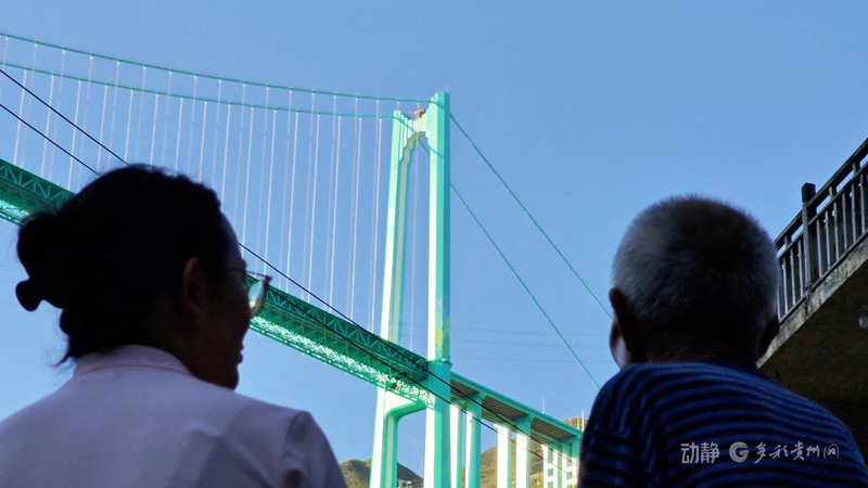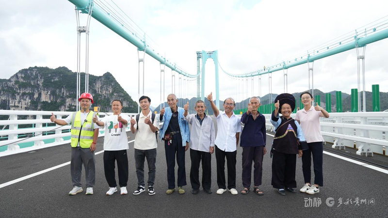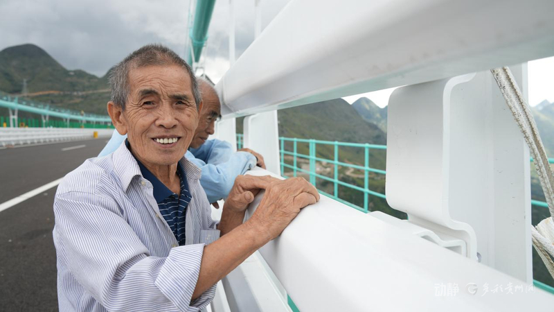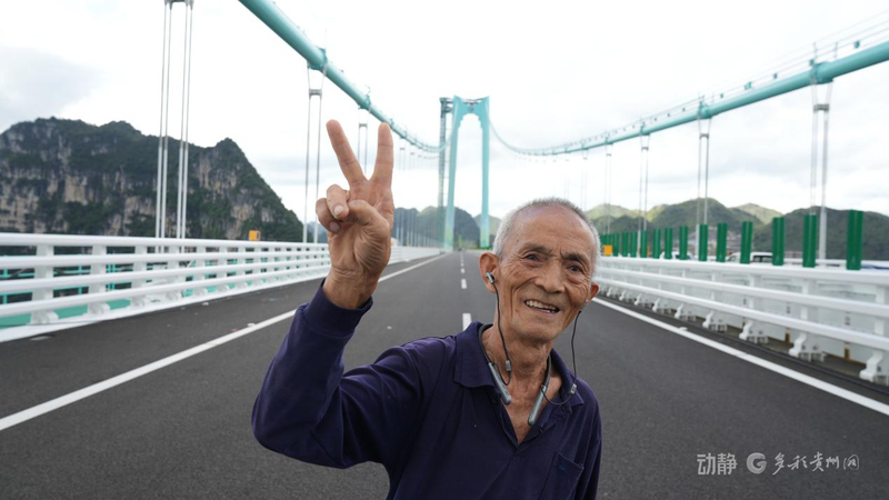 花江村村民梁再恩:“我们贵州以前是很穷的,现在建了世界最高的大桥,我很开心。”
