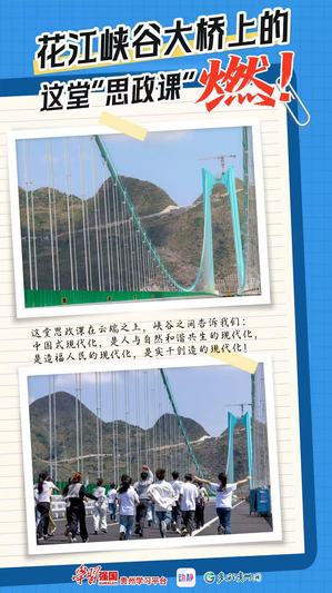 近日,在花江峡谷大桥上,一场“山河间的思政课”,令师生们激情澎湃。大桥之上,师生们声音朗朗;云端之上,钢铁巨龙,威武雄壮。