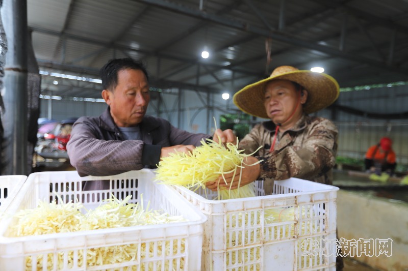大西桥镇蔬菜产业园菜农检查清洗好的韭黄