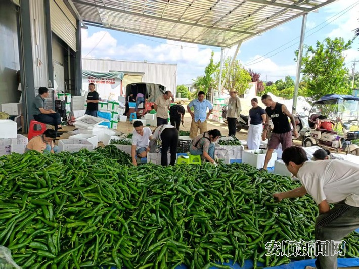 在获评“粤港澳大湾区‘菜篮子’生产基地”的安顺市西秀区狗场屯为民果蔬种植专业合作社,农业经纪人程杰忙着指导工人收购、分拣蔬菜,他说:“园区蔬菜集中上市后,我们每隔一天就要将10吨左右的蔬菜发往广东虎门。”