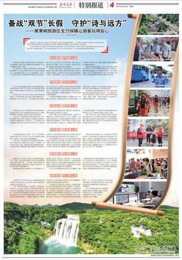 为让这份奔赴不负期待,黄果树旅游区提前部署,从安全隐患排查、交通秩序疏导,到服务设施完善,全方位启动“双节”保障备战模式,以扎实举措为游客筑牢安心出行的“防护网”,全力迎接假期旅游高峰的到来。