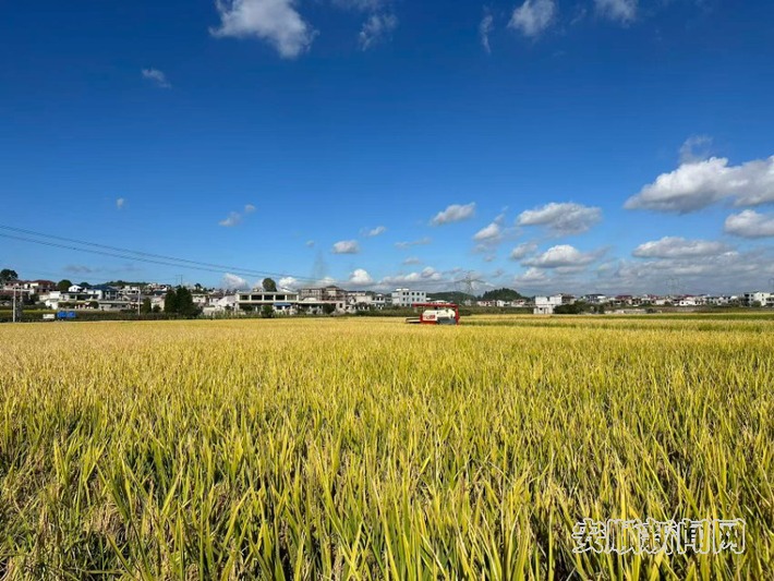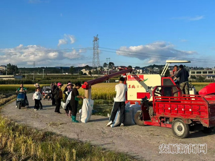 金秋时节,在西秀区蔡官镇广袤的田野里,上千亩稻田被染成金色,微风拂过,稻浪翻滚间送来阵阵稻香。从蔡官村到长山村的田埂上,大型收割机往来穿梭,机械轰鸣中,饱满的稻穗尽数归仓,田间地头处处是丰收的忙碌景象。