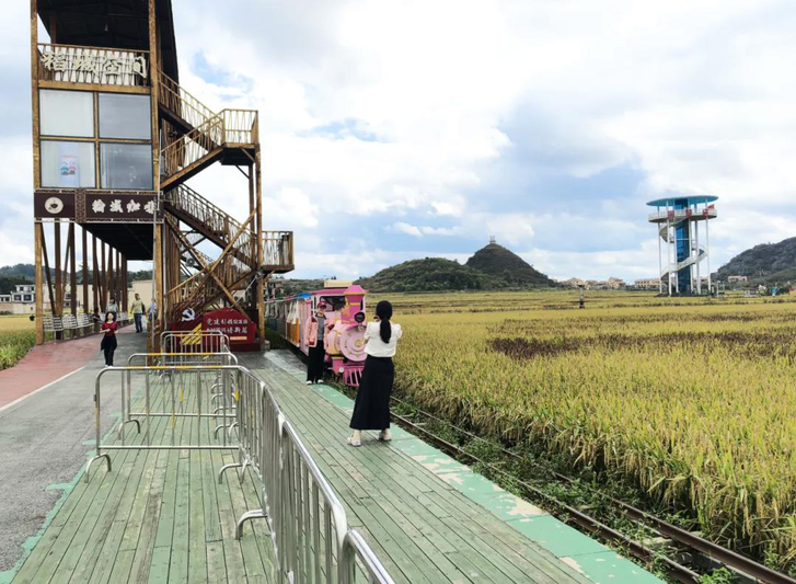 “闻着沁人心脾的稻香漫步田埂,眼前的每一幕都像从画里走出来的!”来自贵阳的游客唐燕举着手机不停拍摄,她笑着说,自己和同伴特意赶早自驾前来,“之前只在社交平台刷到过这里,来了才发现,随便找个角度都能出片,这份田园诗意太值了!”