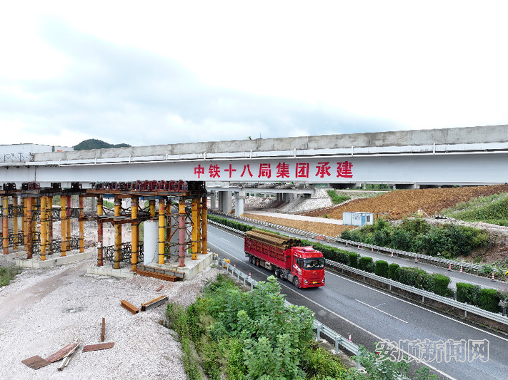 据了解,与传统的高速路上方直接吊装不同,此次施工采用了中铁十八局自主研发的“反拖轮组式顶推工法”。技术人员先在路侧完成钢箱梁拼装,随后通过操作变频器、泵站与滑轮组,在工人紧密配合下,将钢箱梁平稳推越沪昆高速上方。“传统吊装需封闭高速8小时,而我们的工法实现桥下车辆120公里/小时正常通行。”项目总工翟奇愚指着监控屏幕显示的车流数据介绍道。