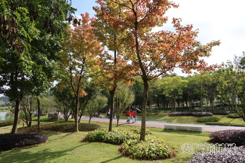 草坪区域更是热闹非凡。孩子们在金黄草地上奔跑嬉戏,年轻人铺开野餐垫享受秋日暖阳,几位退休老人坐在长椅上闲话家常。