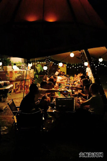 这里的帐篷酒店藏于绿意间,推窗是山林清景,步行可达屯堡古村落,时光仿佛都慢了下来。“坐在这儿喝杯茶,晒着秋日暖阳,风里都是草木香,太舒服了!”来自贵阳的游客静坐在帐篷前休闲椅上,目光所及皆是惬意——既能沉浸式体验露营野趣,又能漫步古村落寻味历史,这样的组合让他连连称赞。