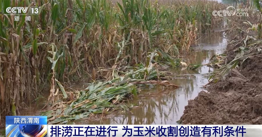 陕西渭南市近期遭遇持续降雨天气,导致部分玉米地出现积水,当地水利部门采取多种措施积极排水,为收割工作创造有利条件。