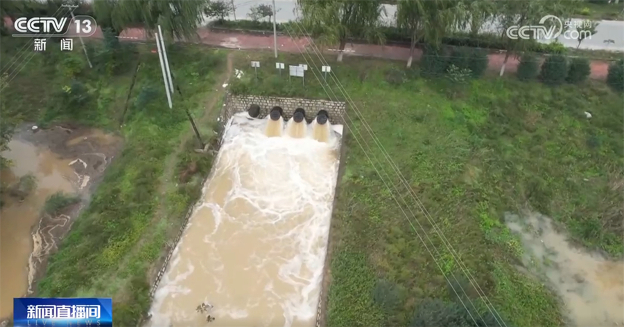 在华阴市地势相对较低的村子,排水工作已经持续了多日。先把水排到池子里,再流到干沟,再排出去。