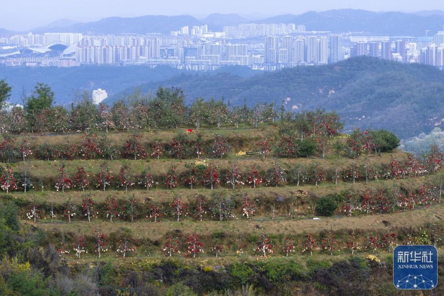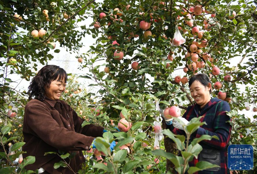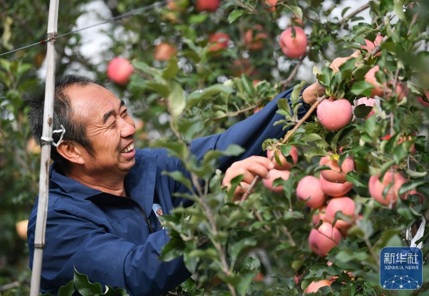 深秋时节,地处黄土高原地区的陕西省延安市的农田、果园里,各种作物陆续成熟,农民忙着收获,田间一派繁忙景象。