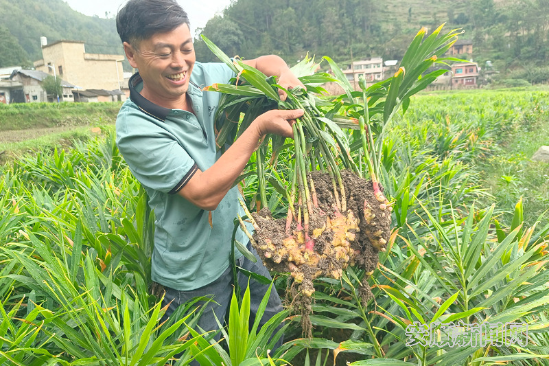 白河村党支部书记罗勇弯下腰,轻轻拔出一株生姜,抖落泥土,露出饱满肥硕、色泽鲜亮的姜块,脸上洋溢着喜悦:“这株生姜足有4斤重,今年又是一个丰收年!”
