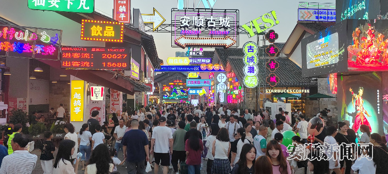 另一方面,安顺坚持原真化保护、活态化传承、市场化利用,全力再现“一河两岸、人间烟火”的市井繁华,推动安顺古城焕新出圈,新华社《参考消息》连续两年向世界报道中国人民过大年的幸福火热场景,都用了安顺古城的照片作为头版头条。今年4月,第十九届贵州旅游产业发展大会在安顺古城圆满召开,古城的精彩焕新赢得了国内外嘉宾的高度好评。今年以来,日均客流量突破5万人次,假期在10万人次左右,单日最高客流量超23万人次,“白天游黄果树看绝美山水、晚上逛安顺古城品人间烟火”正成为越来越多游客的最佳选择。