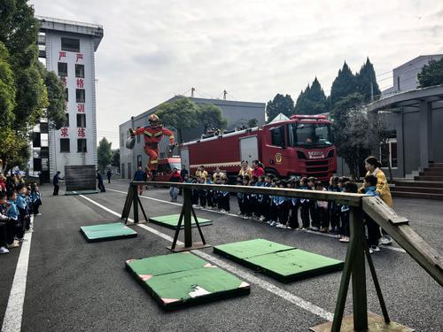 在训练场,孩子们观看消防员日常训练项目。攀爬训练塔、快速铺设水带、跨越障碍等一系列标准规范、干净利落的操作,赢得了孩子们的阵阵掌声。训练结束后,孩子们与消防员合影留念,并向救援站赠送锦旗,表达敬意。临别前,消防宣传员向每位小朋友发放了消防安全宣传资料。