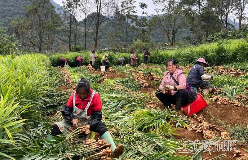 近日,普定县玉秀街道秀水村的多种蔬菜迎来丰收季。记者在该村生姜种植基地看到,数十名务工村民分工协作,有的弯腰刨土、分拣姜块,有的坐在地里修剪姜须,动作娴熟高效,田间地头一派繁忙有序的劳作景象。