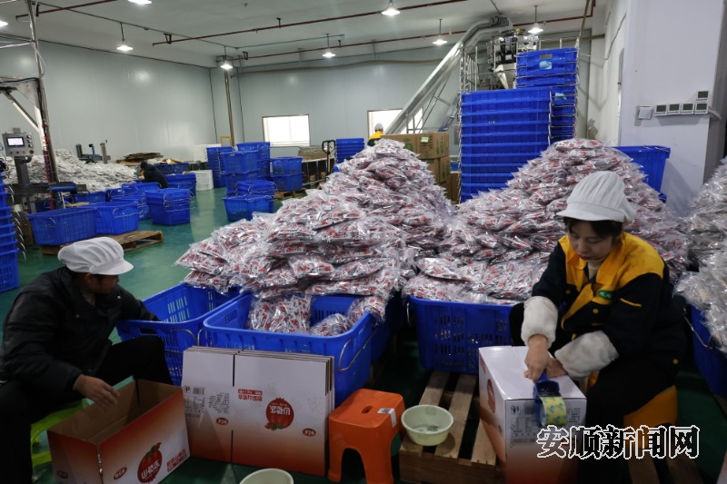 工人正在繁忙的生产车间打包刺梨系列产品