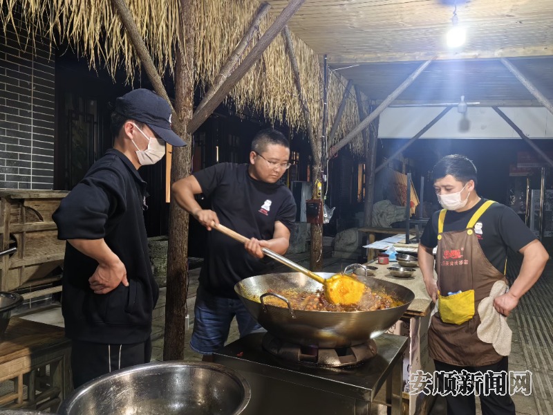 “村宴”的意外火爆,让刘伟最初“回馈老顾客”的想法发生了“质”的飞跃:“大家的热情度这么高,希望‘村宴’能成为安顺的‘村’字号品牌,成为宣传安顺、集聚人气的新名片。”最近,他正积极尝试与“飞凤屯香破酥包”合作拍摄推广视频,还与“破店烧烤”联手开展直播,希望通过联合宣传,抱团发展,让更多安顺特色美食被全国食客知晓。