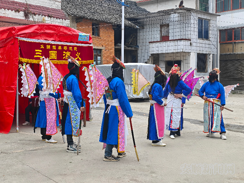 大年初一,安顺经开区幺铺镇羊场村的村广场锣鼓铿锵、年味浓郁。村地戏队队员们身着传统戏服,头蒙青巾、腰围战裙,佩戴精美木雕面具,手持木制兵器,在一锣一鼓伴奏下吟唱起舞,原汁原味演绎《三国演义》经典桥段,以非遗民俗为村民送上新春喜悦,让传统年俗更具文化韵味。“每年过年我们村都要进行地戏演出,既给村里添了年味,也让咱们的屯堡地戏能够保留传承。”围观的村民说道。