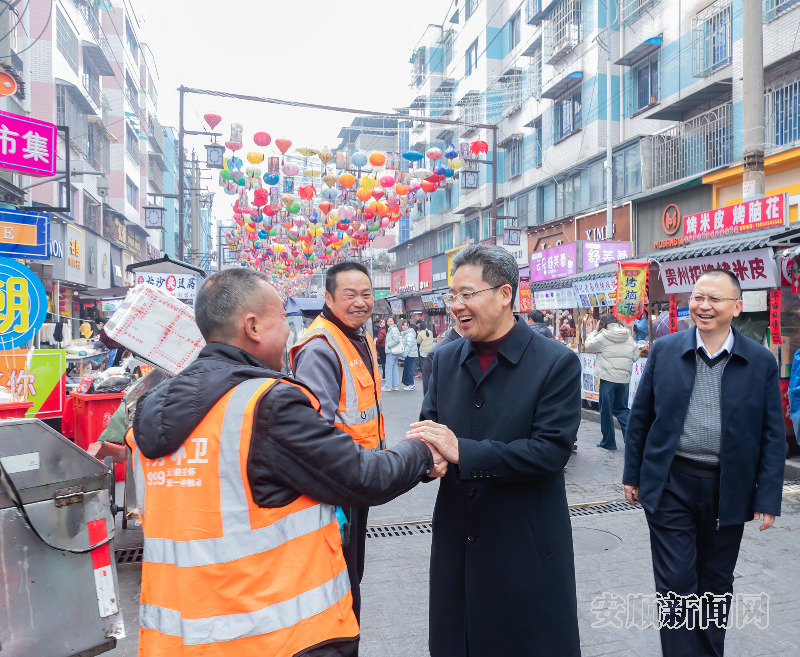 在安顺市公安局经开区公安分局特巡警大队和市公安局专项勤务保障中心,尹恒斌向值班民警致以节日问候,感谢大家的辛勤付出。他希望全体民警坚守岗位、忠诚履职,严格值班备勤,强化节日期间社会治安巡逻防控,用“辛苦指数”换取人民群众的“幸福指数”,守护一方平安,保障群众欢度新春佳节。尹恒斌还通过随机走访、实地看望等方式,慰问了安顺古城、顾府街等一线环卫工人,了解节日城市保洁工作情况,感谢大家节日期间坚守工作岗位、守护城市整洁,要求各级各部门要用心用情关爱环卫工人,做好后勤服务保障工作,为大家创造更好的工作条件。尹恒斌还随机走访慰问了外地游客和市民群众,与大家深入交流,给大家拜年。要求各级各部门要始终坚持人民至上,全力做好城市运行、安全稳定等各项工作,确保人民群众过一个欢乐祥和的春节。