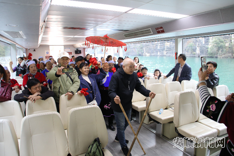 “太震撼了!”当渡轮行至横跨峡谷的花江峡谷大桥之下,游客们置身山水中,抬头仰视这座世界级大桥的雄姿,不禁连连发出感叹。