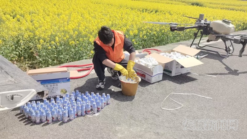 3月12日,西秀区大西桥镇中所村的千亩油菜花田一片金黄,区农业农村局在此开展油菜花期病虫害飞防作业。田埂上,农技人员正有序调配药液;花海间,植保无人机低空穿梭,均匀喷洒药剂,以科技手段筑牢油菜丰产防线,护航春季农业生产。