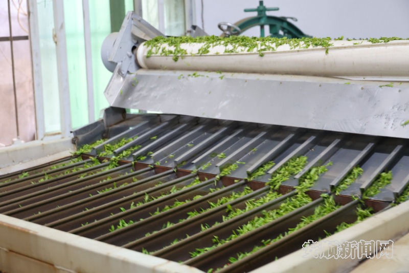 在安顺御茶村茶业有限责任公司的加工车间内,国家级制茶技能大师现场指导,毛峰、抹茶、煎茶等10余类产品从生产线源源不断产出。